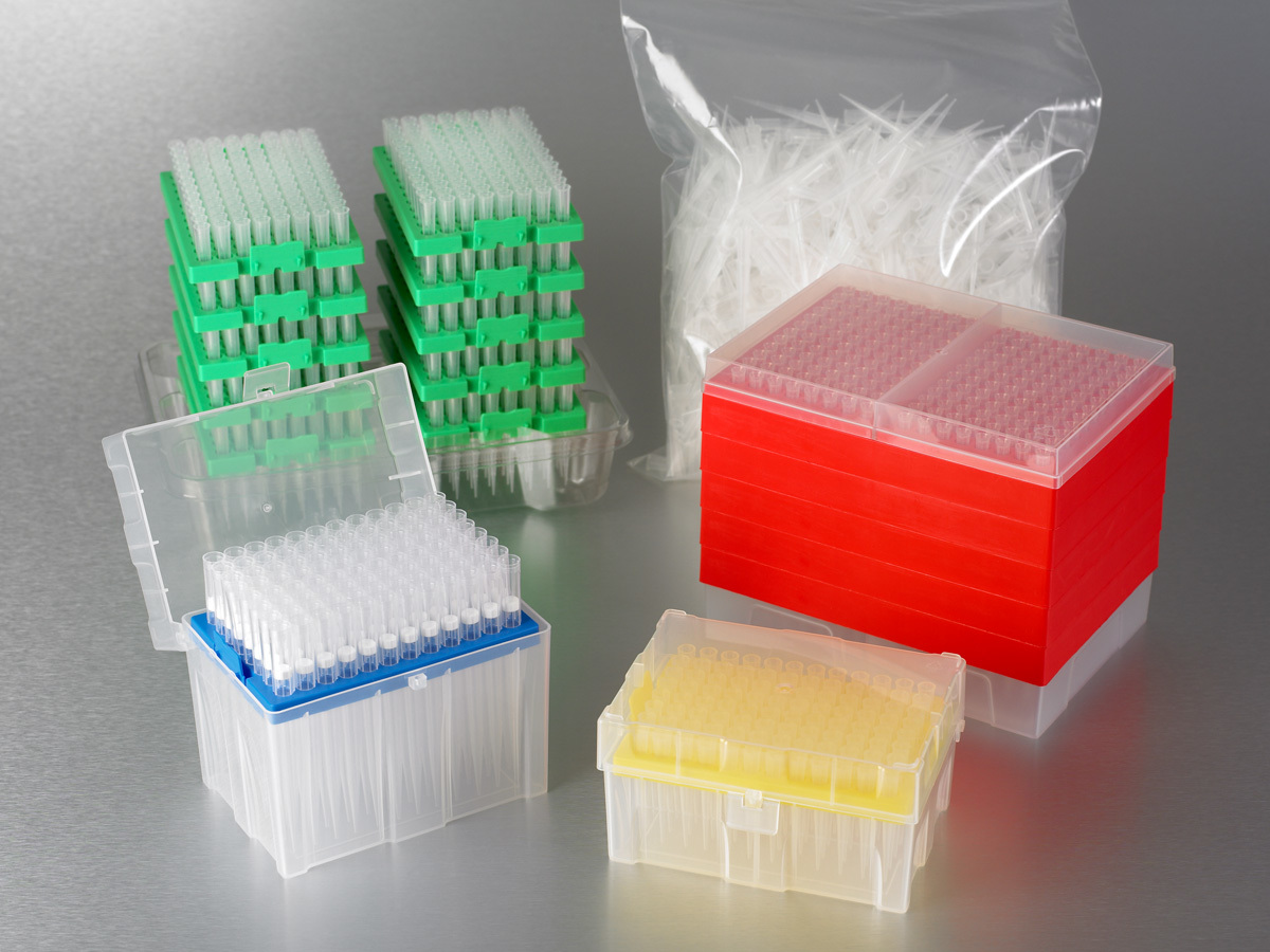 Extended tips offered in 10, 300, and 1250 µL (1000 µL extended length) volumes